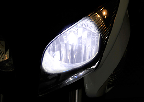 明るさに対して消費電力が少ないと言うのもHIDの大きな特徴だ。明るさの分だけ電気も余計に食いそうなイメージだが、実際にはバーナーの絶縁破壊させる際に点灯時には高電圧をかけるが、これは一瞬なのでほとんど電力を消費しない。さらに光色が安定するまでの数秒間はハロゲンランプ並に消費するが、安定後は35W程度しか電力を消費しない。一般的なハロゲンランプが55Wなので半分強程度ということになる。最近のバイクは常時点灯や電子部品の増加などバッテリー負担が大きいだけに、消費電力の低さはバッテリーライフにも影響する。初期投資の費用はかかるが、長い目で見ると経済的なメリットも大きいのだ。